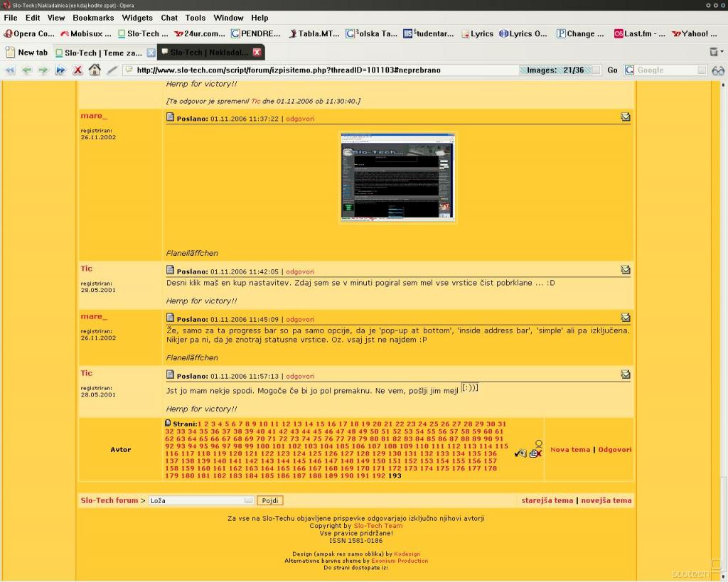 Ne, ne, ravno tega nočem. Hočem tako, kot je npr. v firefoxu in ieju - da se ti pokaže v statusni vrstici (torej tisti vrstici čisto na dnu okna) in ne nad njo, kot se sedaj. (Glej screenshoot par postov višje)