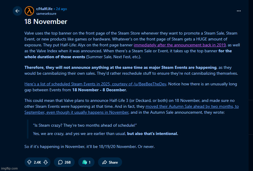 18 november bi lahko bil dan, ko napovejo Half Life 3 ? :)