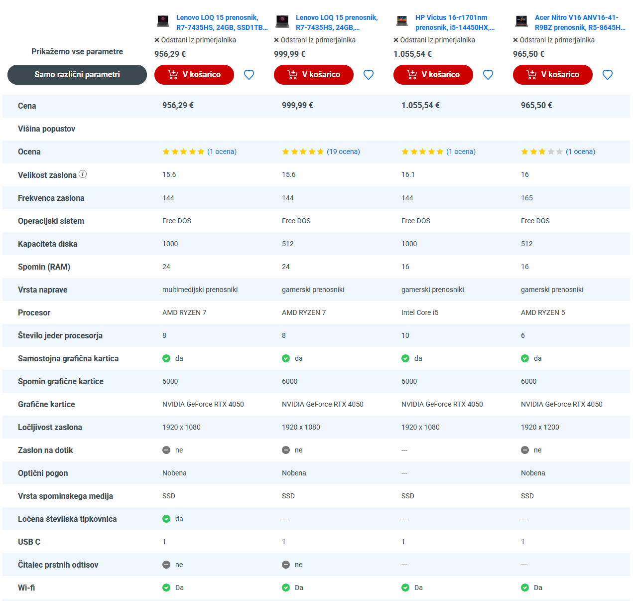 A kateri od teh izstopa po kvaliteti, glede, da je cena vseh nekje v okviru budgeta. Specsi so rahlo različni. Nekak se mi najbolj dopade ta HP ima pa Lenovo več rama a manjšo diagonalo.