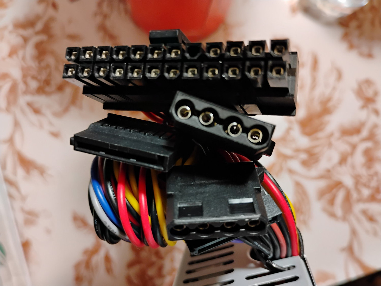 Ima en molex, dva sata in ta glavnega velikega. Tisti gre na matično sem: