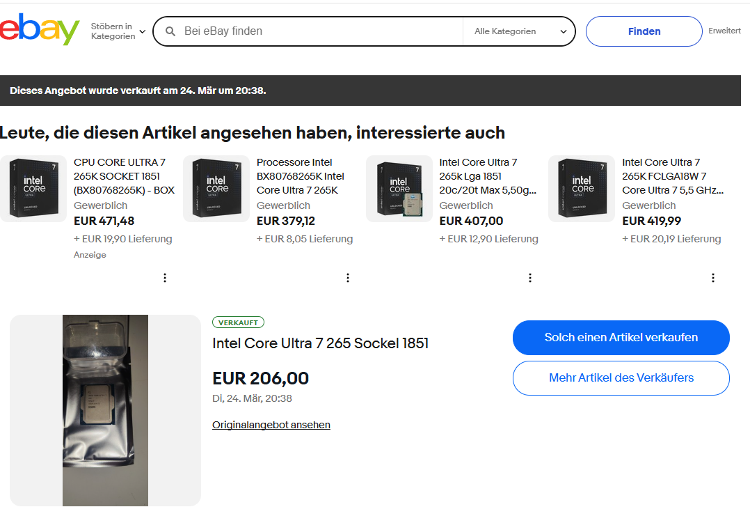Za okoli 200 EUR imam možnost kupiti Core 7 Ultra 265 (navadna, ne K varianta) procesor.