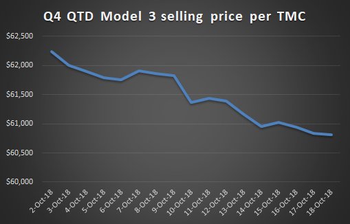Povprečna nakupna cena Model 3 se očitno znižuje. Kar potrjuje teorijo, da je Tesla v Q3 prioritizirala vse kupce dražjih modelov. Zato je nekdo lahko naročil Model 3 Performance in ga dobil že čez par tednov, vmes ko cel kup kupcev $50k verzije čaka že mesece. Če bo Tesla kdaj imela positive cash flow, bo to v Q3.