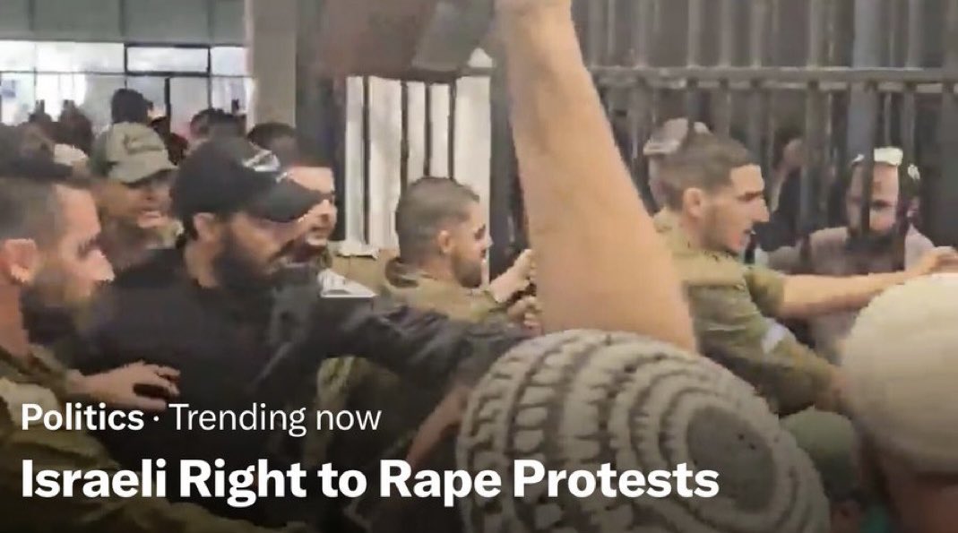 A shocking footage released by Israeli Channel 12 of Israeli soldiers raping a Palestinian prisoner behind shields at the Sde Teiman detention camp.