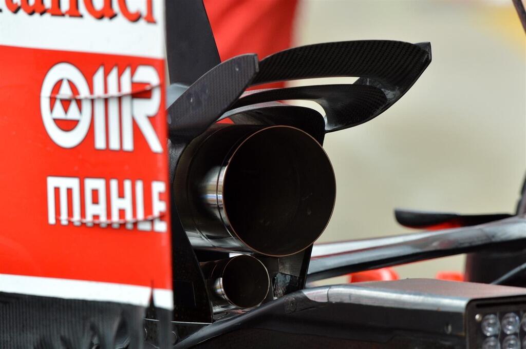 Ferrari poizkus izboljšave zvoka (skoraj smrdi na performance  aid :D) preko dodtnega ti wastegate izpušnega izhoda. Bv. po trenutnih pravilih je to nelegalno (ironično prvotna pravila verzije 1 bi to dovoljevala).