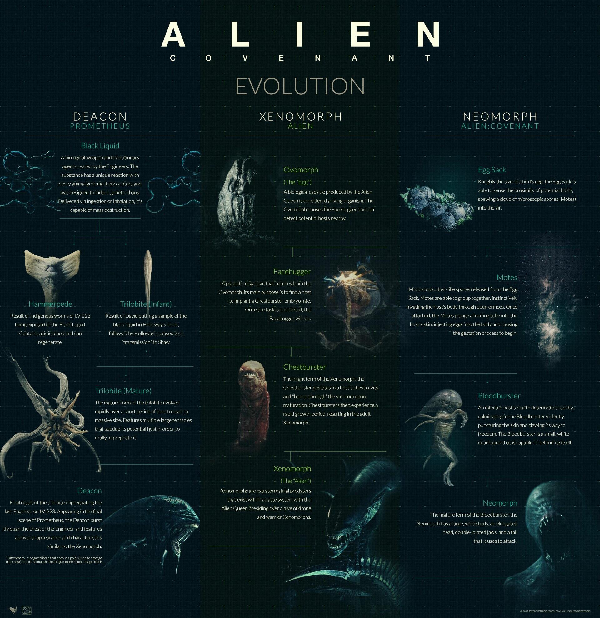 Ja ta slika lepo razloži začetek Deacona, Xenomorfa in Neomorfa.