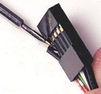 Če ima kabel takšen usb konektor kot je na spodnji sliki, potem samo privzdigneš plastiko s kako šivanko, potegneš žičko ven ter na to žehto prestaviš vse žičke po razporedu, da se bodo ujemale z razporeditvijo na mamaplati.