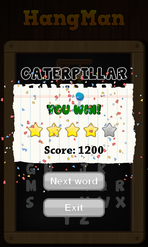 *Težavnostne stopnje: Dodajanje črk k besedi. Večja, kot je težavnostna stopnja, več točk pridobite