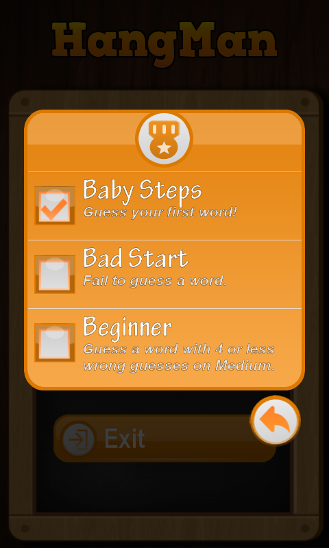 *Dosežke(achievments): Več besed kot uganete, več dosežkov ter nazivov pridobite.