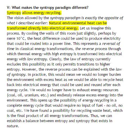 Kaj to je citat iz njene knjige o sintropiji? Če je to res, je carica. Zrušila je termodinamske zakone. To je revolucija v fiziki, primerljiva z Einsteinovo relativnostjo ali kvanto mehaniko. Pravzaprav, še huje -- zrušila je zakon velikih števil (katerega posledica je entropija), torej matematiko! Takšne revolucije znanost še ni doživela.