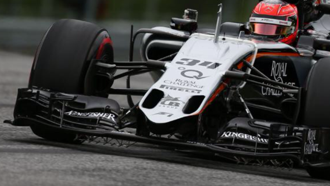 5) Force India pa se poigrava z domišljijo. Sam sem bil prepričan, da ne moraš z vanitiy panel in z pravili enega prereza ustvarit luknje v nosu. Prvo ob pogledu na sliko na daleč sem mislil, da so nosilce krilc ločili od "jedra" (crashstrukture) z manjhno režo (pač zadostiti moraš pravilom prerezov itd.), pa še tega ne vidim, tako je interpertacija, zakaj je tole legalno, izven mojega poznavanja pravil.