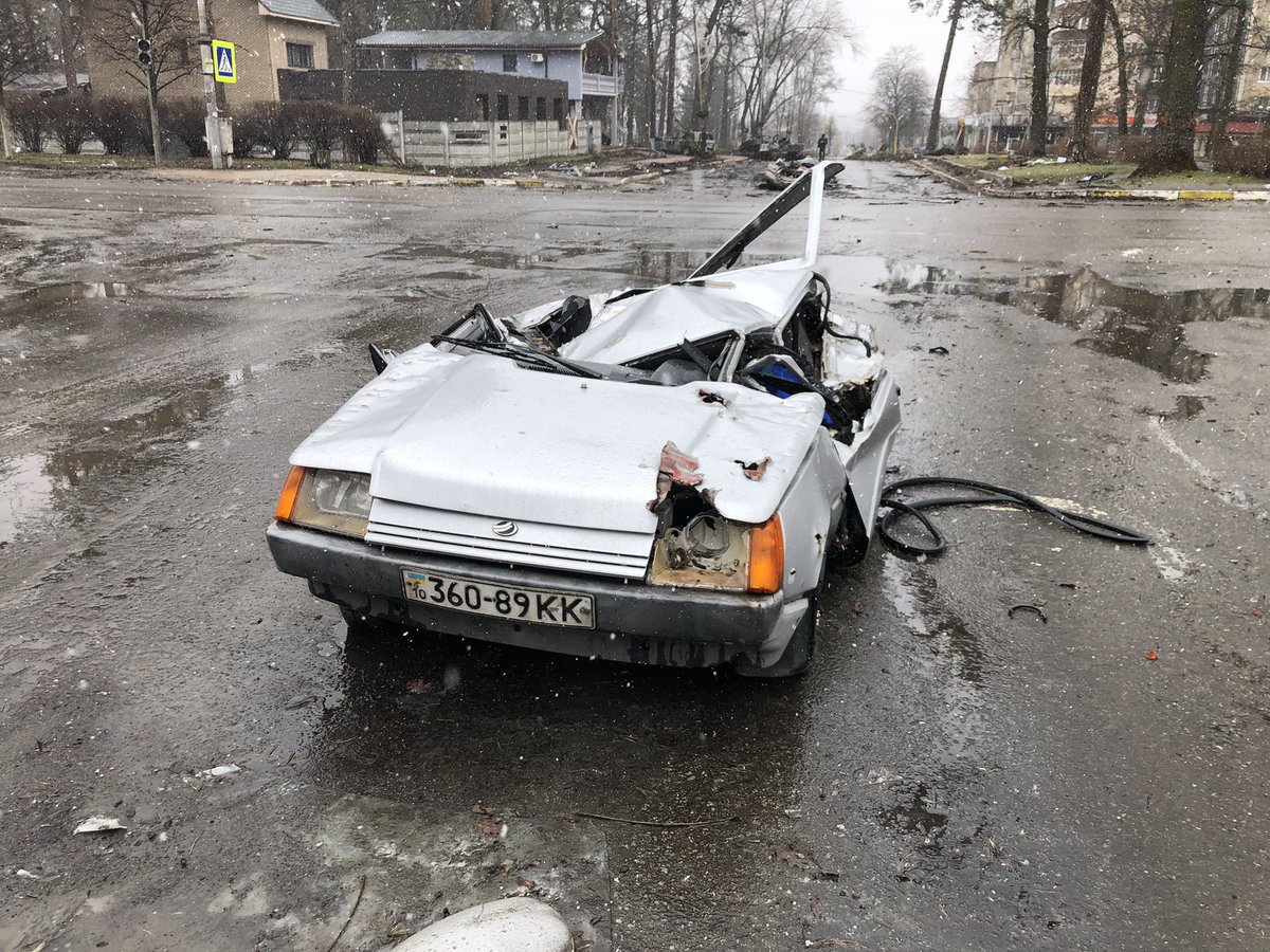 Shot cars are everywhere on the roads. Some are crushed by armored vehicles. They have dead people. In Tavria, the body of a man. Maybe someone knows the numbers