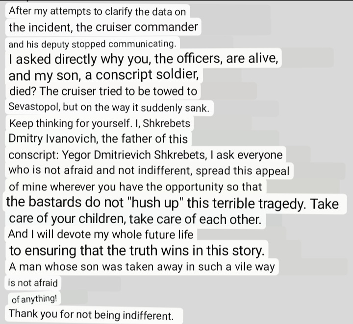 Father of sailor "missing" presumed dead from #Russian Flagship #Moskva claims Russian MOD lied to him about son & events surrounding sinking