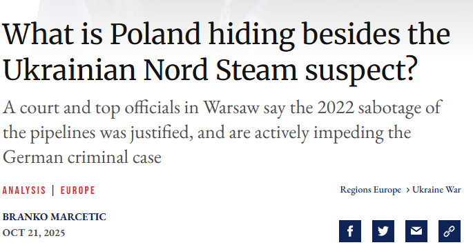 By September last year, angry German investigators were privately accusing the Polish government of having sabotaged their probe and engaged in "obstruction of justice." One former head of Germany's foreign intelligence agency, the BND, charged outright that it had done so to "to cover up its own involvement in the attack on the pipelines," because "operations of such dimensions are inconceivable without the approval of the political leaders of the countries involved."