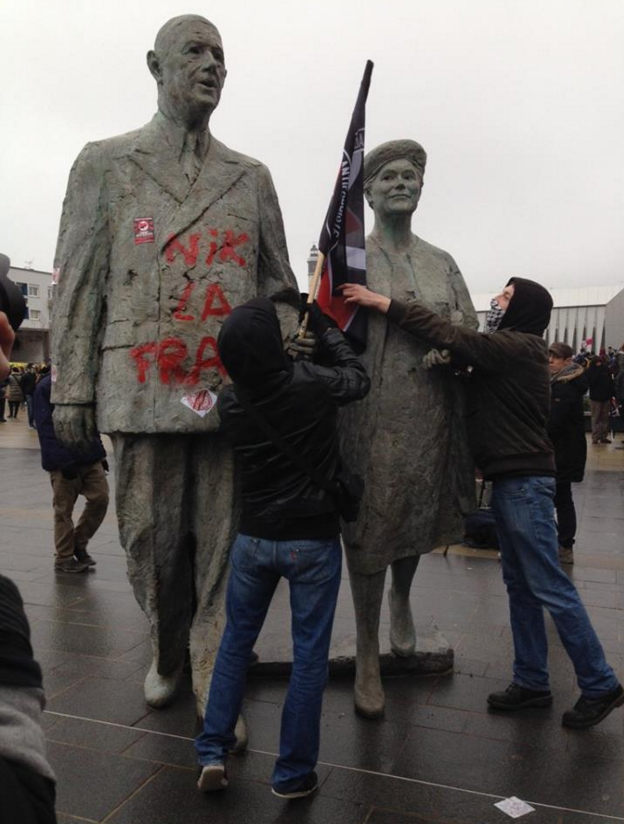 Promigrantski islamofašisti so se v Calais-u spravili (Nik la France - fuck France) tudi na kip C. de Gaulle-a, ki je Francijo reševal pred nacisti.