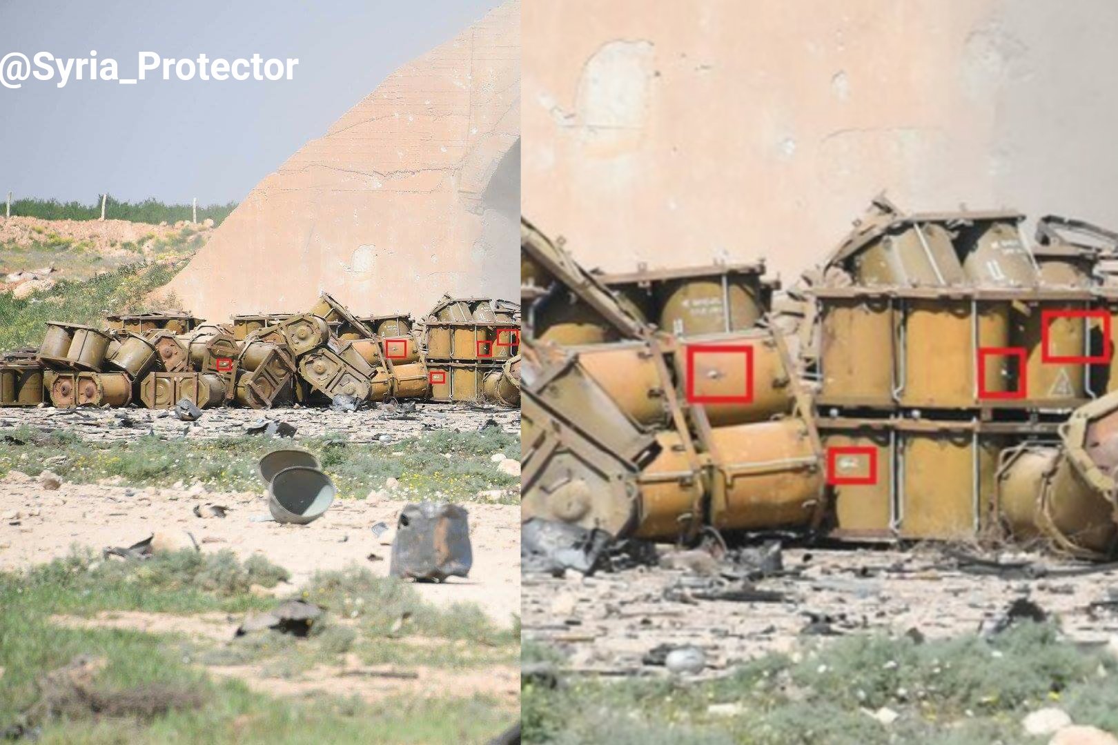 These chemical containers in Al-Shuayrat airbase are exempted and destroyed years ago by OPCW inspectors who drilled holes in it. pic.twitter.com/kfgFcT6hM3