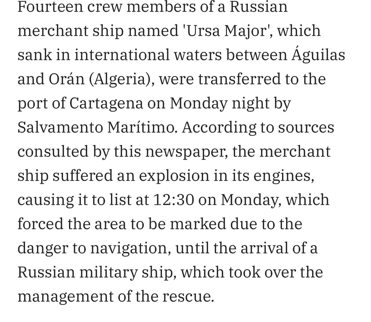 Baje je neka španska ladja pomagala Ne vem zakaj se rešuje te ruske riti glede na to stalno evropi grozijo z jedrskim orozjem.