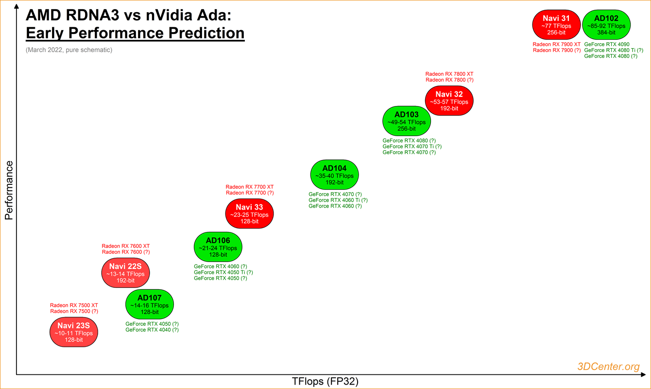 Mene bolj zanima kaj misli narediti Nvidia, če bo res takole kot v zgornjem grafu, ni druge kot čimprej narediti cut down AD102, 4080 Ti 20GB. Čeprav muditi se jim ni treba, ker N32 tudi izide zelo pozno, zna biti da šele v Q2 2023.