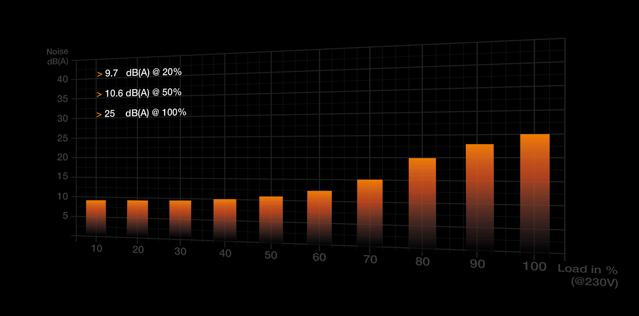 Glede na krivuljo grafa load/obrati ventilatorja (hrupnost) mora postati precej obremenjen ( 588/648 W; 90% load), da začne tuliti.