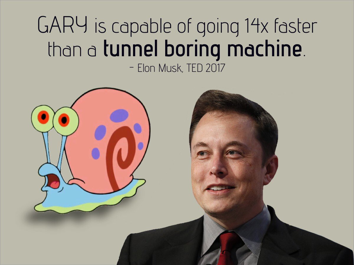 In tako kot je tesla postala "car citizen", kjer vsi govorijo kako je tesla kul "samo se vse morajo spilt", smo tle na isti poti. Zgradil bo par tunelov ki se bojo skos sesipal, za to da se avti ne morejo not vozit pri mach 7 bojo pa krivi naftni lobiji in shorterji. :P
