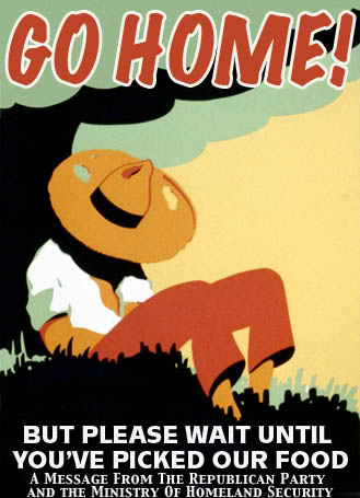Brez mehičanov se polja ne oberejo. Ker američani nočejo obirati za ceno, za katero bi se lastnikom farm splačalo pobirati pridelek. Torej logično sledi, da brez ilegalcev kmetje niso konkurenči tistim dobaviteljem, ki trenutno filajo police v supermarketih.