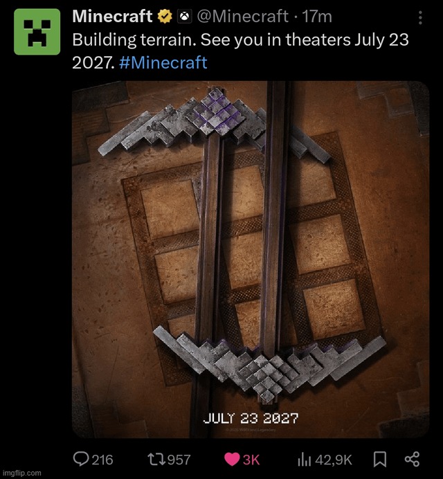 Film Minecraft 2 bo prišel v kino dvorane 23 julija 2027.