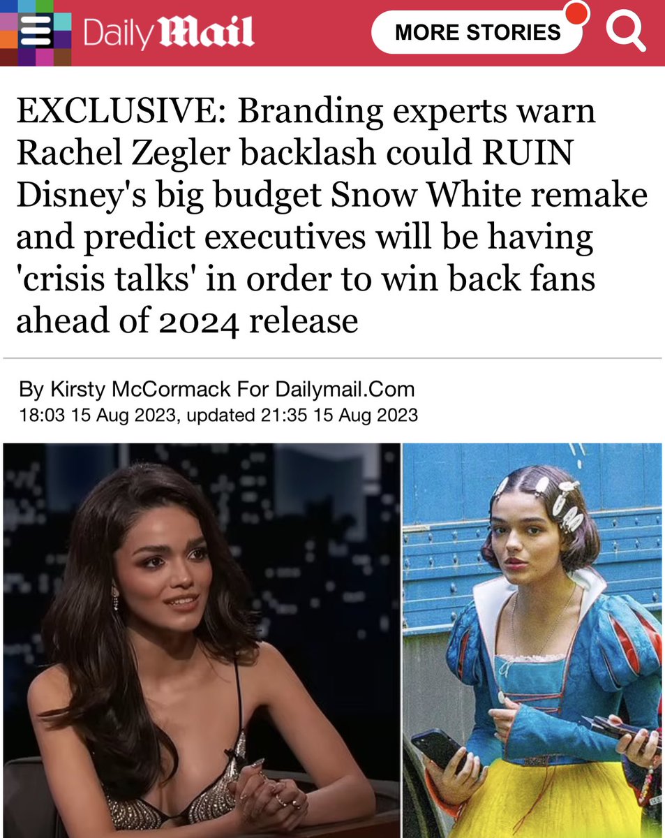 Latino igralka Rachel Zegler katera bo igrala Snow Brown zadnje čase čedalje bolj razburja z izjavami. Pravi, da bodo kar konkretno spremenili zgodbo, da bo bolj po današnjem času. V glavnem to ne bo ljubezenska zgodba med princom in Sneguljčico, ker princ je navaden stalker / zalezovalec. Ona ne potrebuje princa, da jo reši ona tudi ne sanja o pravi ljubezni ampak o tem kako bo nekoč postala velika voditeljica naroda...