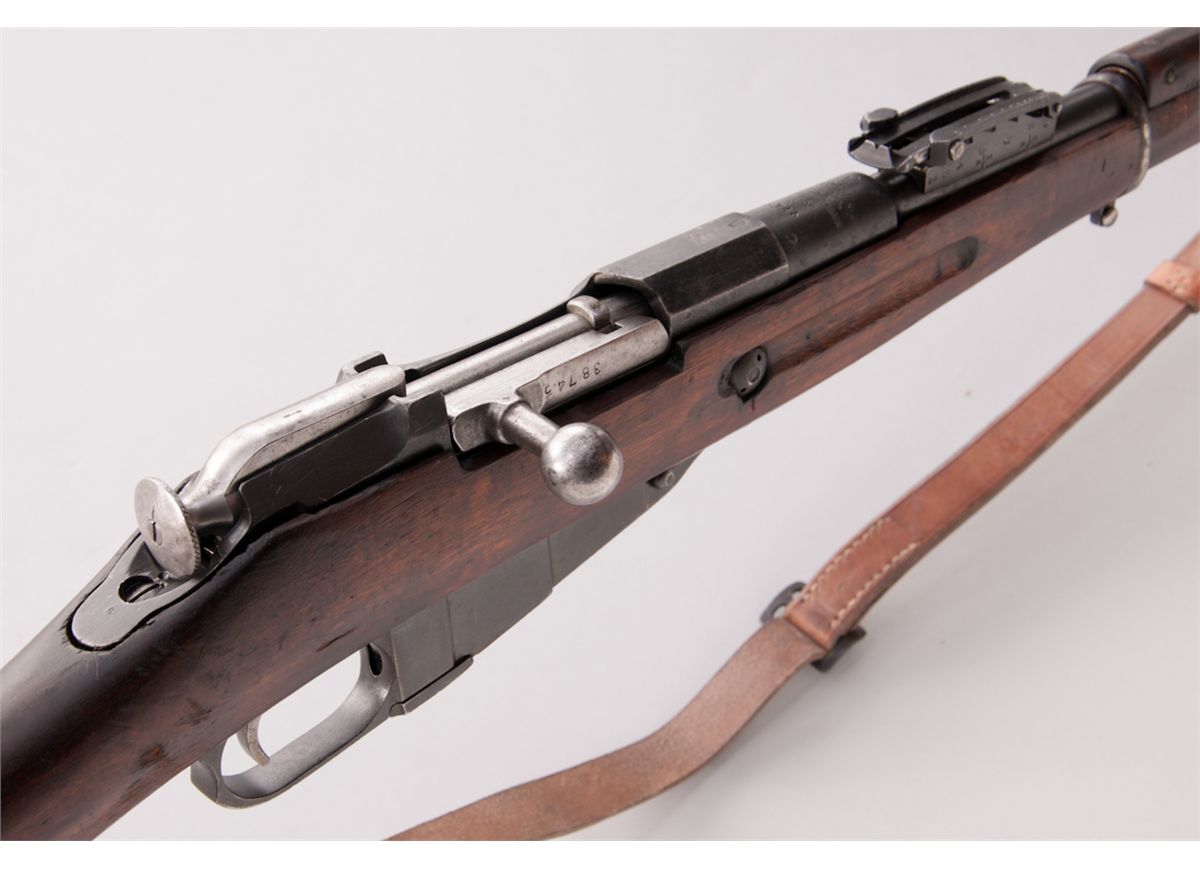Na vrsto je prišla replika ene od najlegendarnejših pušk. Po prepoznavnosti se sicer ne more primerjati z v naših krajih bolj znanimi mavzericami, ali z vinčesterkami, s katerimi je na nek način povezan njen nastanek. V rusko-turški vojni v letih 1877-78 so bile ruske čete večinoma opremljene še z enostrelnimi puškami, Turki pa so za s tiste čase najsodobnejšimimi repetirnimi vinčesterkami prizadejali Rusom hude izgube. Ruski generali so ugotovili, da je skrajni čas za modernizacijo in leta 1889 so izbirali med tremi modeli repetirk - dve sta načrtovala Rusa, Mosin in Zinovjev, tretjo pa Belgijec Leon Nagant (ki sem ga že omenil, kot konstruktorja revolverja, ki ga je uporabljala ruska vojska). Na koncu so se odločili za Mosinovo puško, z nekaj spremembami, sposojenimi od Nagantove, zaradi česar se je puške na Zahodu oprijelo neuradno ime Mosin-Nagant (ali tudi Nagant-Mosin), čeprav je bila njena uradna oznaka sprva samo M1891, brez imena konstruktorja. Šele kasneje, v Sovjetski zvezi, so jo uradno poimenovali Mosinova puška.