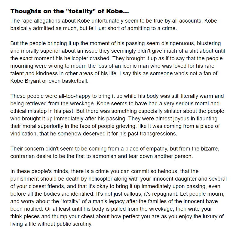 Res žalostno glede nesrečne in prehitre smrti Kobeja, hčerke in vseh ostalih.