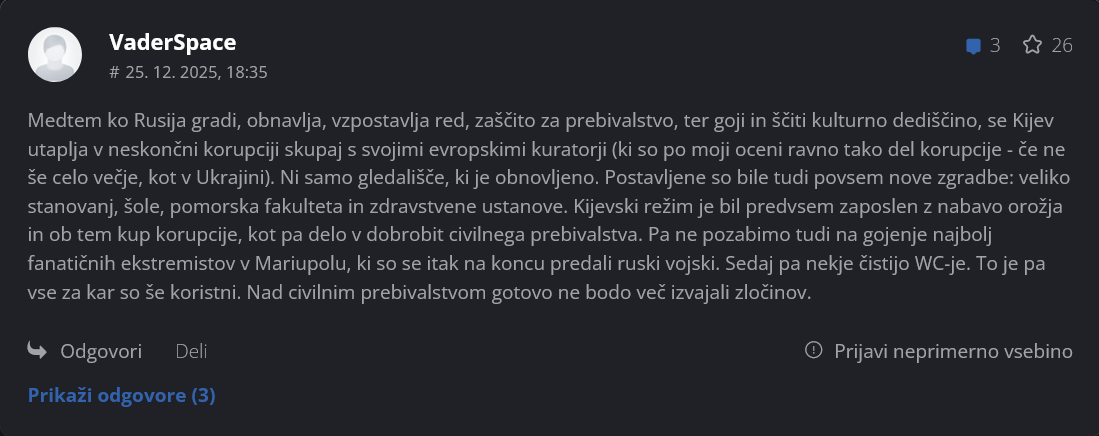 Dej še kej iz Rusije, pa ti jaz prlimam, kok so ukrajinci danes osvojili u Kupjansku?