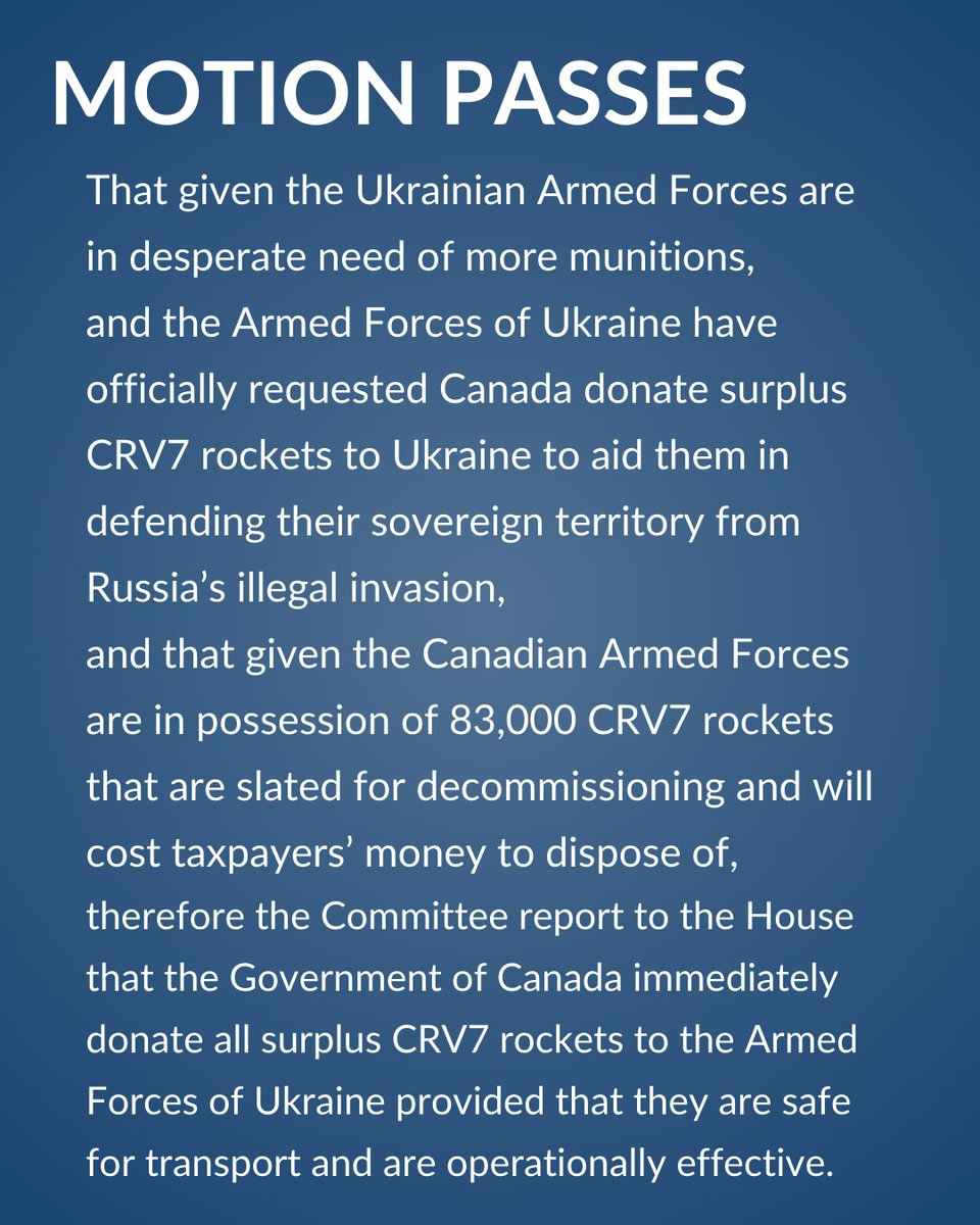 After much consternation by the Liberal-NDP coalition, Defence Committee agreed to send our soon to be disposed CRV7 rockets to Ukraine.