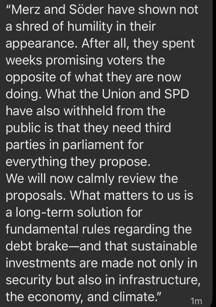 - 500bn infrastructure fund (also so badly needed in 🇩🇪) to be spent over 10 yrs incl for civil protection