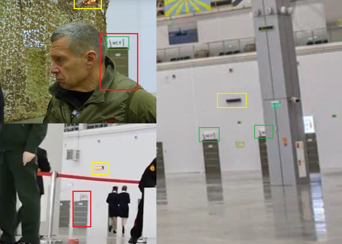 Kaj pa lokacija strogo tajne baze »Rubicon«? Ponovno prosimo za pomoč Vladimirja Solovjova. Nenatančno cenzuriranje njegove ekipe jasno razkriva lokacijo: hangar v »Patriot Congress Center« v vojaškem parku in muzeju »Patriot« blizu Moskve. Več podrobnosti o opremi, kot so stebri z zvočniki in druga tehnična oprema: Prav tako smo geolocirali bližnji hangar, kamor so šli Solovyov, Krivoruchko, Shmyrin in Budnikov pogledat vozila, ki jih uporablja „Rubicon“ za prevoz svojih posadk na frontno črto 55.564868, 36.825582. To je morda eden od razlogov, zakaj je bila razstava „Army-2025“, ki običajno poteka v vseh štirih razstavnih dvoranah centra „Patriot“, letos odpovedana.