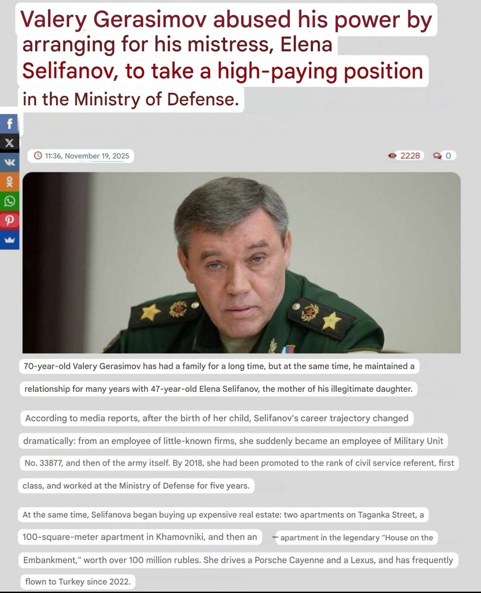 The campaign against Putin's General Gerasimov is blowing up, now the top story in Russia, as the the head of the Russian military is embroiled in a scandal over not only his secret mistress and family but that he's been funneling hundreds of millions in state funds to them.