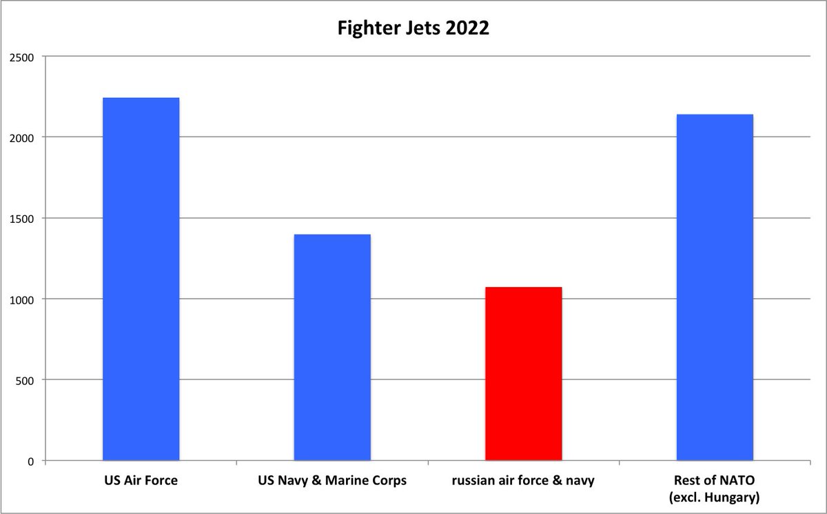 The US Navy and Marine Corps on their own have more fighter jets than the entire russian air force and navy have... and technologically more advanced jets with better radars and missiles. The discrepancy gets even wilder when looking at 5th generation fighters jets.