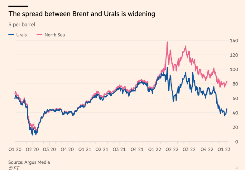 Western sanctions (EU embargo + G7 price cap, both introduced on December 5, 2022) force the Russians to sell their oil at a discount of around $30 per barrel. Russia is trying hard to convince the world that sanctions have no effect on it. Judge for yourself.