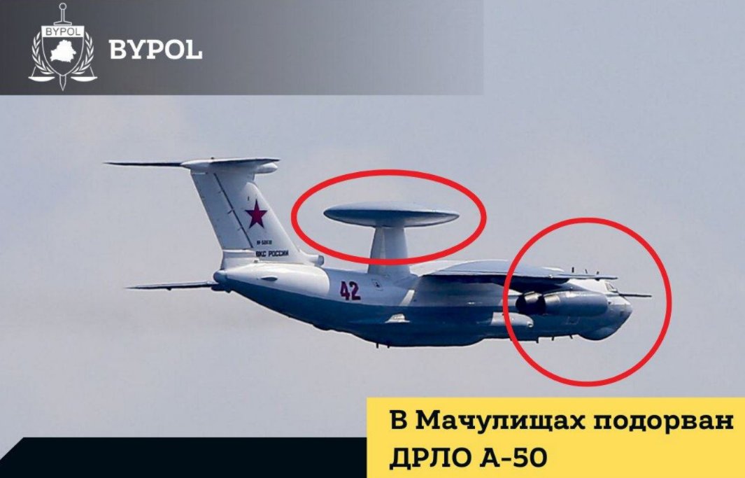 Now this is big. Belarusian Partisans reportedly blew up a Russian A-50 early warning and control aircraft at Machulishchy airfield near Minsk. According to the BYPOL initiative, the front and central parts of the plane, avionics and radar antenna were damaged.
