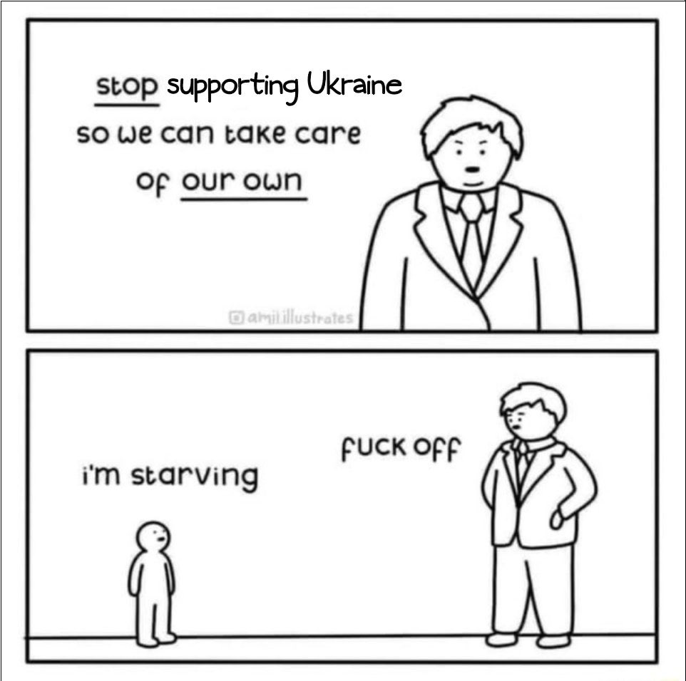 Ni pa dileme glede tega, da je Ukrajina za ruse vitalnega pomena, za zahod pa zgolj poligon za hiranje rusov ter bogatenje vojaške oligarhije.