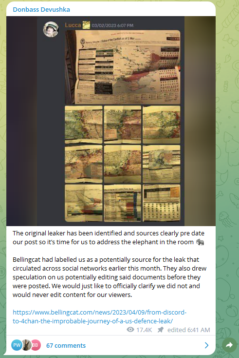 They left at the end of 2022 Why is that relevant? Because Donbass Devushka was one of the original leakers of the top secret Pentagon documents in early March, taken by AIC Jack Teixeria, who was arrested on 4/13