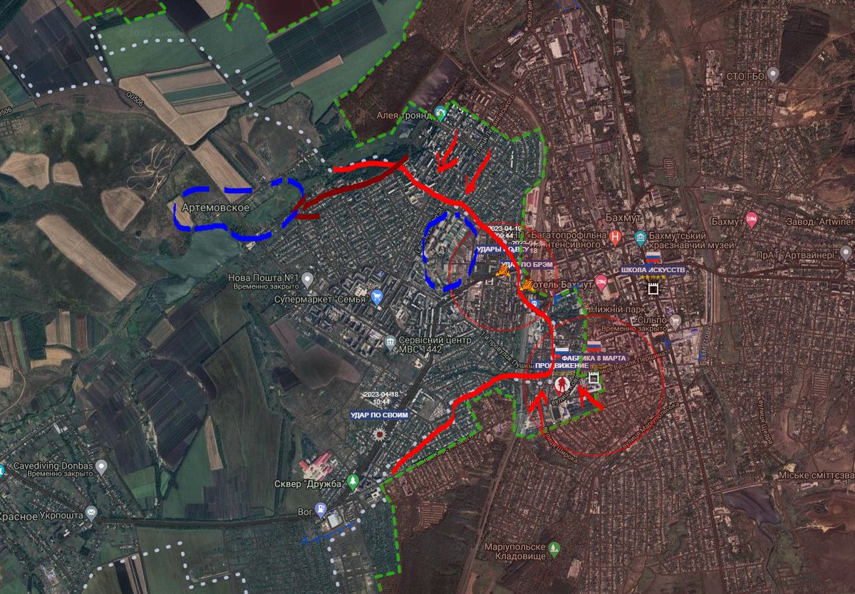 Rusi so prodrli na severu kot sem pisal. Danes pa so Ukrajinci naredili protinapad, tako da je črta tam kot pred 2,3 dnevi.