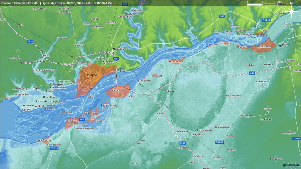 Tole je veliko težje prečkati kot jezero. Pa so govorili da so Ukrajinci jez sesuli da bodo lažje prečkali nad jezom ker bo manj vode.