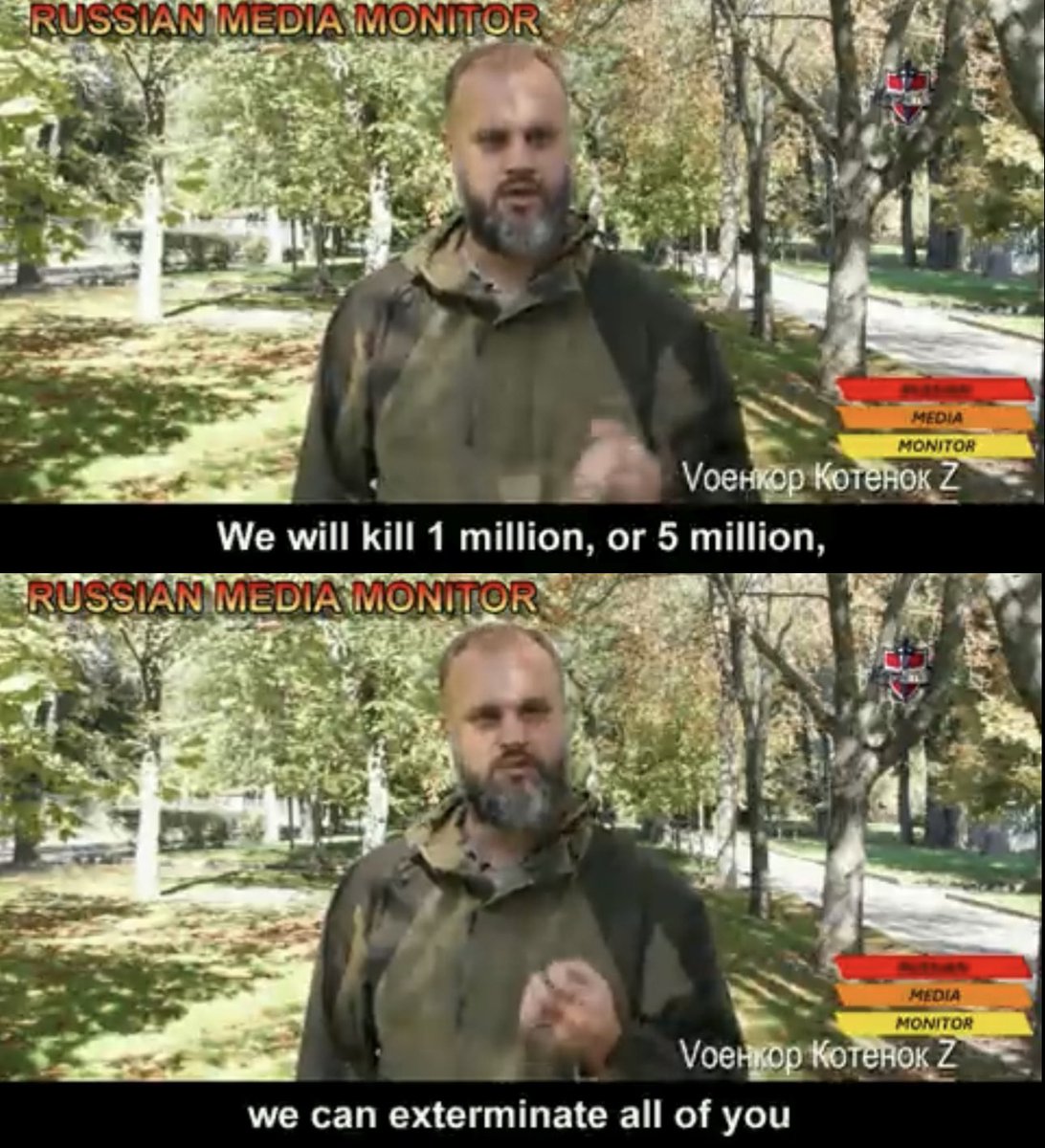 Pavel Gubarev, Russia's "DPR" figure in Donetsk, states their intent towards Ukrainians: "We aren't coming to kill you, but to convince you. But if you don't want to be convinced, we'll kill you. We'll kill as many as we have to: 1 million, 5 million, or exterminate all of you."