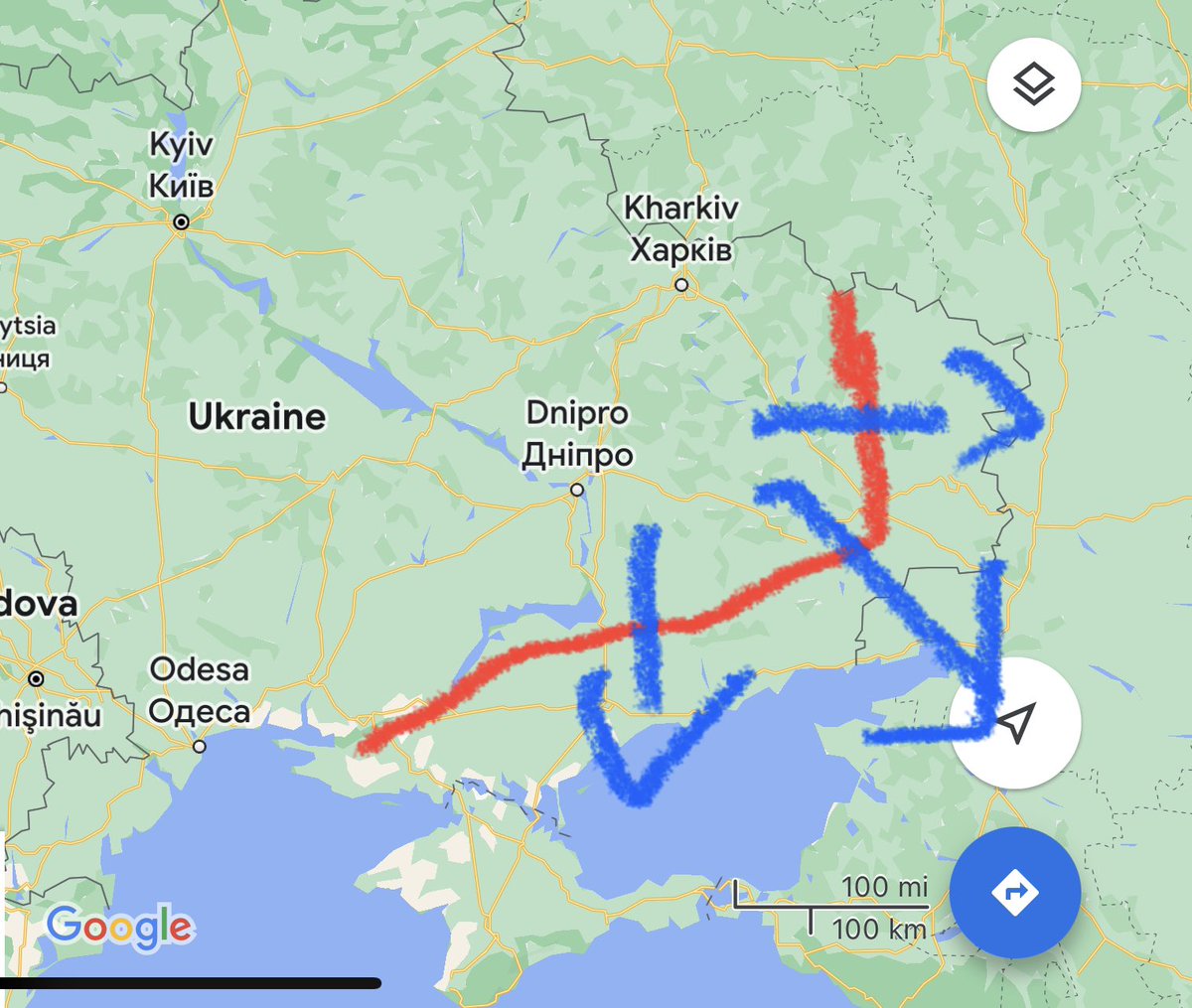 Time for another brief update as to what has happened in the last two weeks in Ukraine. That image by the way is from a thread months ago - but the basic strategy hasn’t changed.