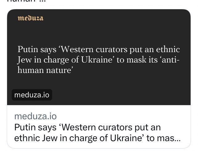 Putin pravi da so zahodni kuratorji na čelo moderne Ukrajine nastavili človeka z judovsko krvjo, da zakrijejo nečloveško naravo te države. Okej, vsaj država je rekel, ne režim.
