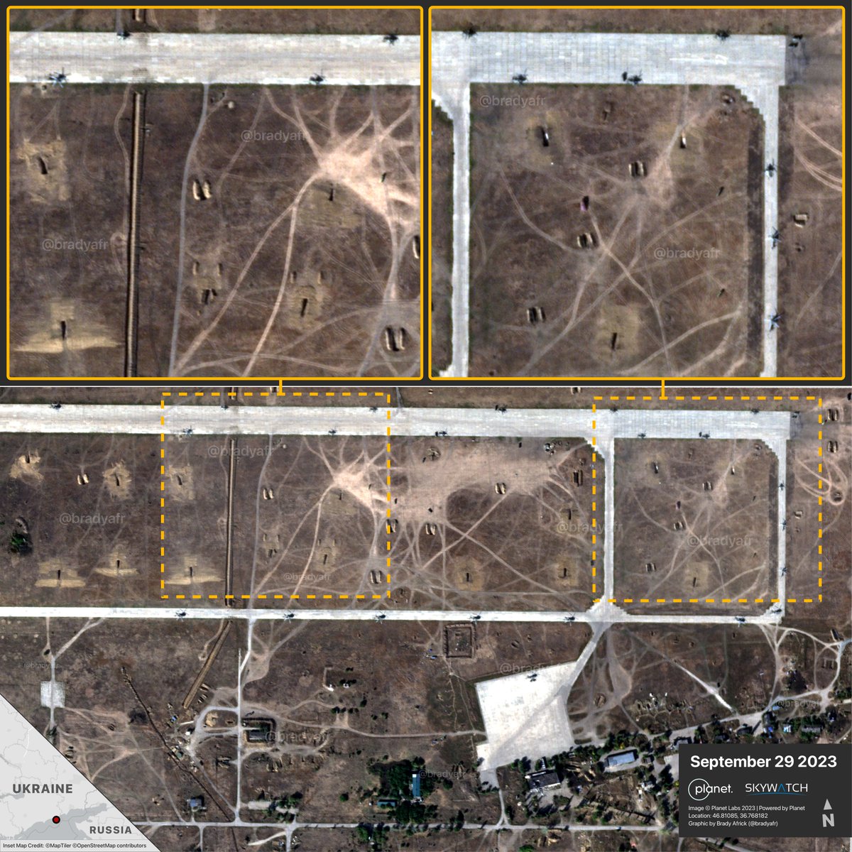 ???? published satelite images, showing the aftermath at Berdyansk airport. It looks like at least 6 helicopters are visibly damaged/destroyed as a result of the ATACMS attack yesterday.