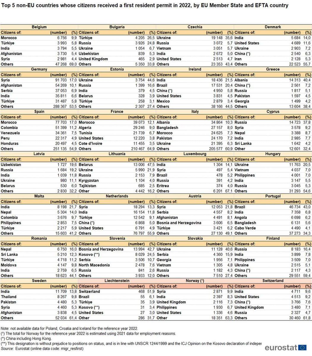 Switzerland, although not an EU member state, has data: 2,327 primary residence permits for 2022.
