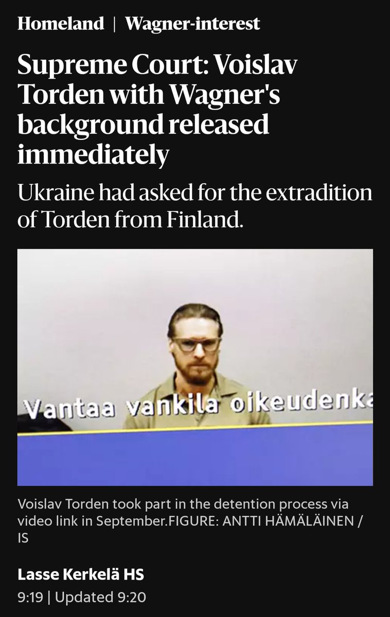 Finnish Supreme Court asks for immediate release of Rusich Group co-founder and war criminal, Voislav Torden AKA Yan Petrovsky. He won't be extradited to Ukraine. More about Petrovsky: