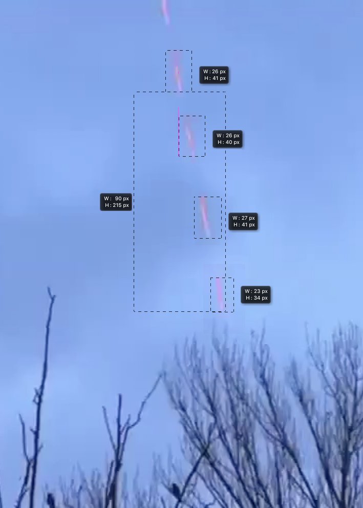 Length of Kinzhal: 7.2 meters (7.2m/40px = 0.18 m/px).