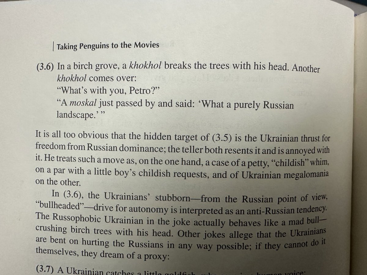 “Anecdotes about khokhols” (a Russian book). Ukrainians have always been one of the main targets of Russian jokes. Emil Draitser emphasizes that the animosity towards Ukrainians by ruzians has always existed fundamentally through humor to degrade hopes for independence/freedom