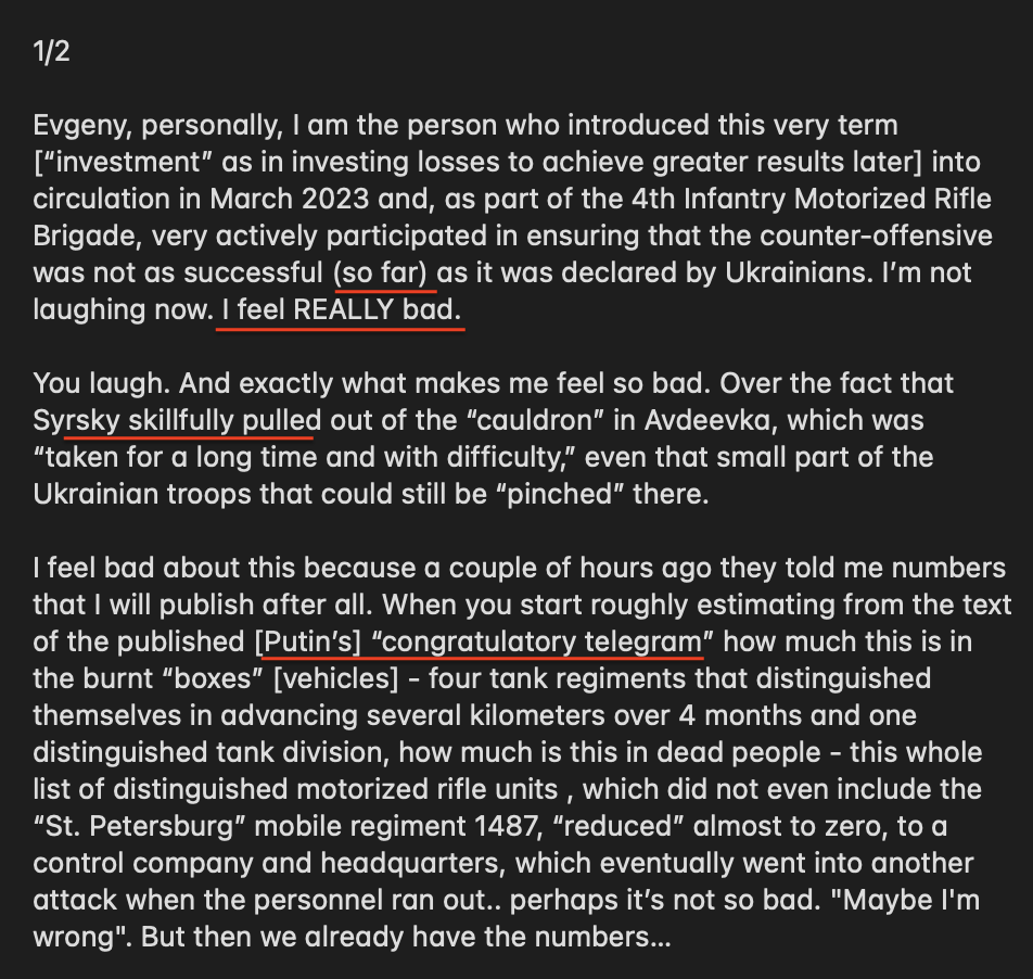 He was harassed by other Russian propagandists because he disclosed 🇷🇺 losses of 17,000 to take Avdiivka.