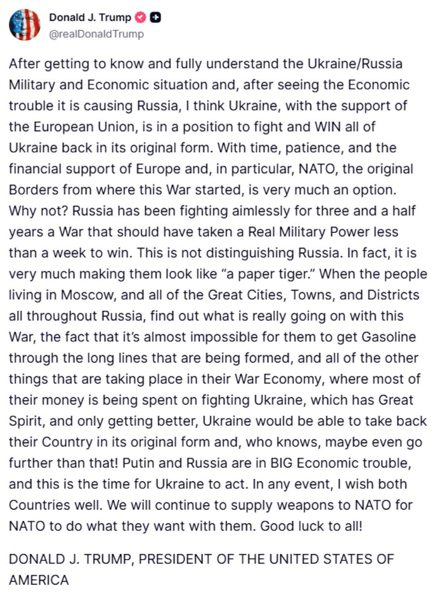 Zelenski je moral nekaj dragega prodat TACOtu da si je ta premislu. Mogoče so se zmenli za osvojit Kursko, Voronježko in Belgorodsko oblast in delit naravna bogastva tam.